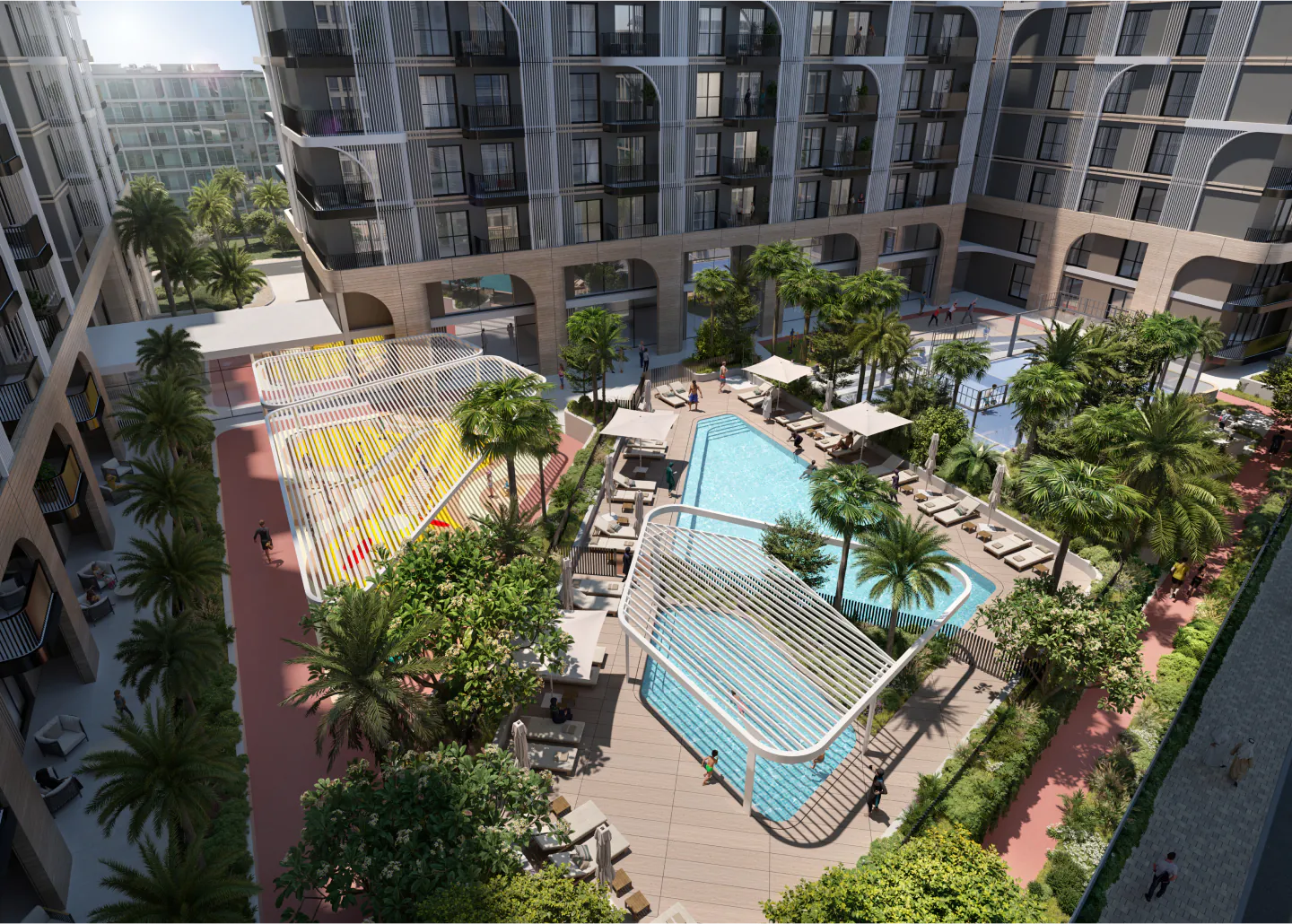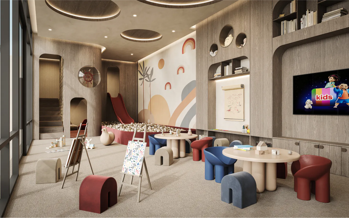 The price of living at Nouran Living includes sports and playgrounds, a fitness center, adult and children's pools, a cinema, and a reading corner. The lobbies feature spaces for relaxation and work and bicycle storage. The complex is adjacent to New York University Abu Dhabi, with Bright Beginnings Nursery and Tamara Polyclinics Medical Center within 550 meters and the American Community School within 5 kilometers.